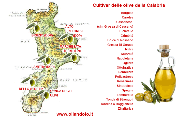 Alto Crotonese (DOP), Bruzio (DOP) Fascia Prepollinica, Bruzio (DOP) "Valle Crati", Bruzio (DOP) "Colline Joniche Presilane", Bruzio (DOP) "Sibaritide", Lametia (DOP)