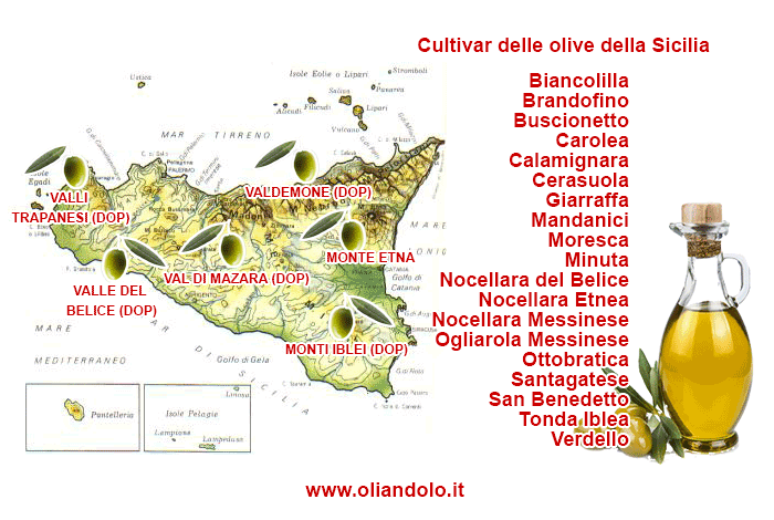 Monte Etna (DOP), Monti Iblei (DOP), Valdemone (DOP), Val di Mazara (DOP), Valle del Belice (DOP), Valli Trapanesi (DOP)