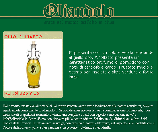 Ricevi offerte, articoli e recensioni su olio e vino direttamente nella tua e-mail!